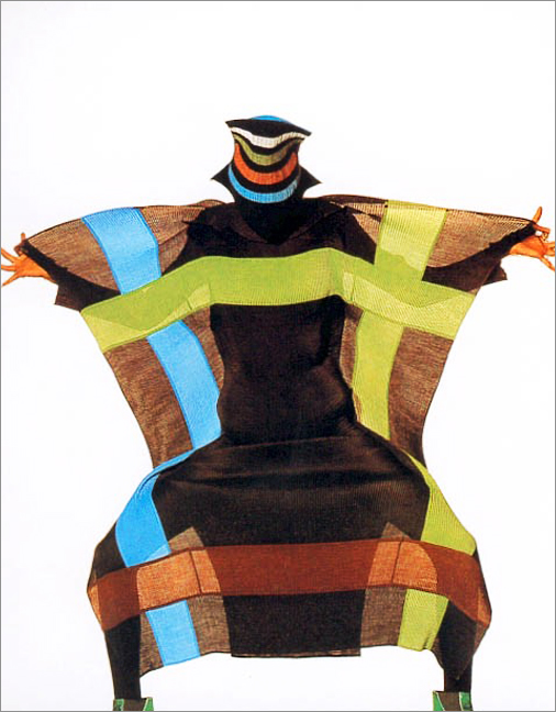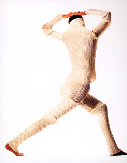 让一块完整的布变成一件“时装”,沿着这个主题,三宅一生关于服装的探索之旅已经持续了半个世纪。现代服装设计的基本理念来自西方,我们所穿的每一件衣服,都已经与我们祖先穿着的衣服完全不同。“汉服”成为一种民族主义的道具。但三宅一生的服装设计,却努力摆脱了西方传统的造型模式,基于东方宽袍大袖的传统制衣枝术进行创新。在材料上,三宅一生也改变了高级时装及成衣一向平整光洁的定式,以各种各样的材料,如日本宣纸、白棉布、针织棉布、亚麻等,创造出各种肌理效果。
